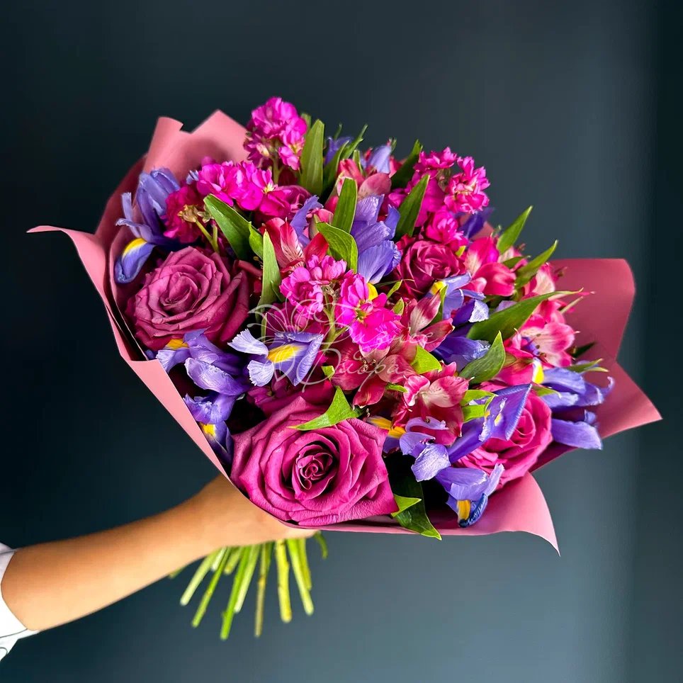 «Зачарованный странник» — сборная композиция насыщенно-розовых роз и фиолетовых ирисов. Букет передает сказочную атмосферу, рассказывает о серьезности намерений и твердости решений. Он идеально подходит для подарка любимой женщине.