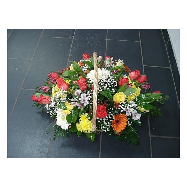 Сборная огромная корзина с весенними цветами,очень красочная и сочная.