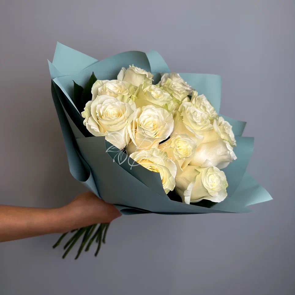 Изысканный монобукет, в который вошли свежие белые розы — символ чистоты и благородства. Цветочная композиция станет прекрасным украшением для любого мероприятия или идеальным подарком для близкого человека.