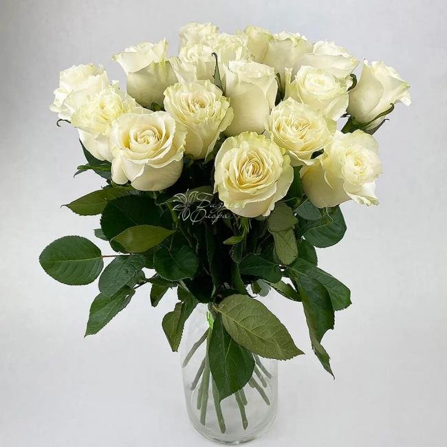 Каждая роза в букете — рассказ о нежности и искренности. Их бархатные лепестки, словно легкая облачность, создают атмосферу романтики и спокойствия.