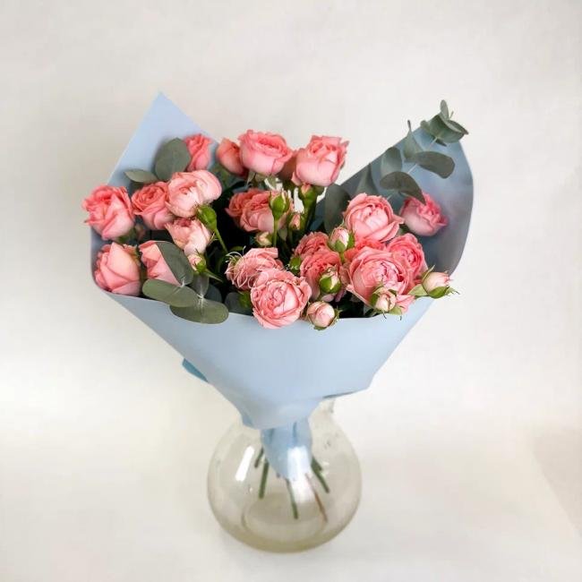 Кустовые розы — маленькие облака, они расцветают в вашем пространстве, наполняя его ароматом весны и легкости. Букет — симфония чувств, отражающая утонченность и романтику.