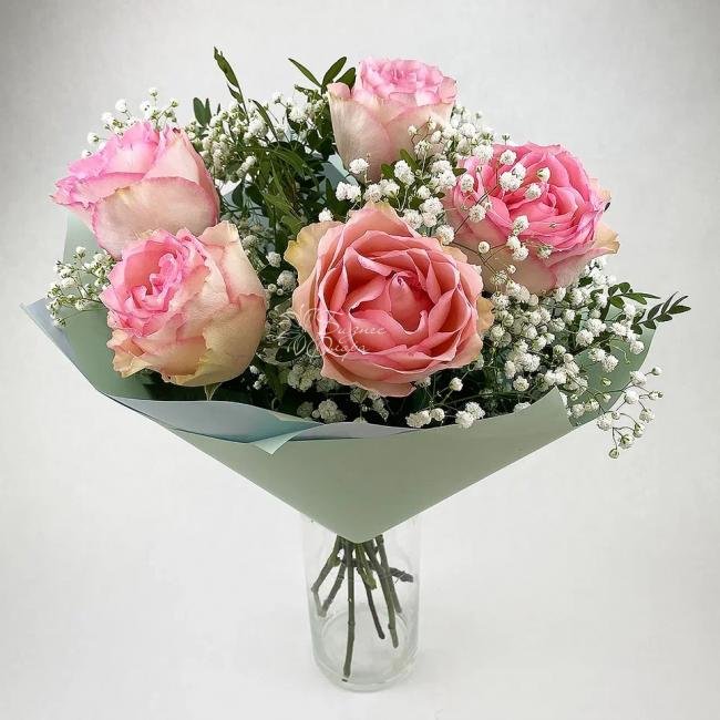 Пастельный оттенок розового придает букету нежности. Цветочная композиция расскажет получателю о трепете ваших чувств, оголенности эмоций и искренности признания.
